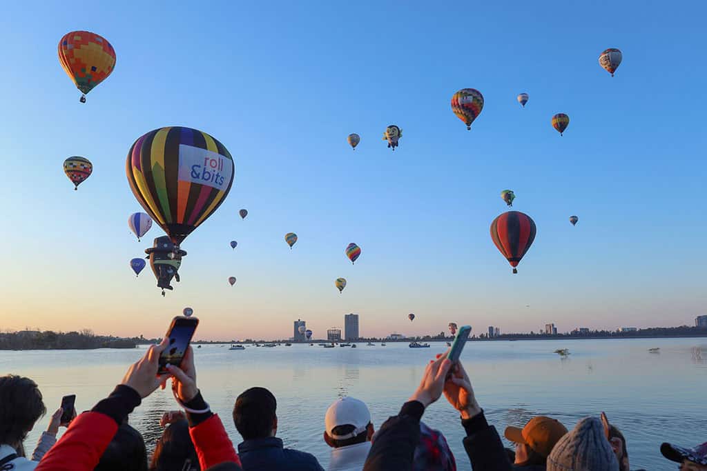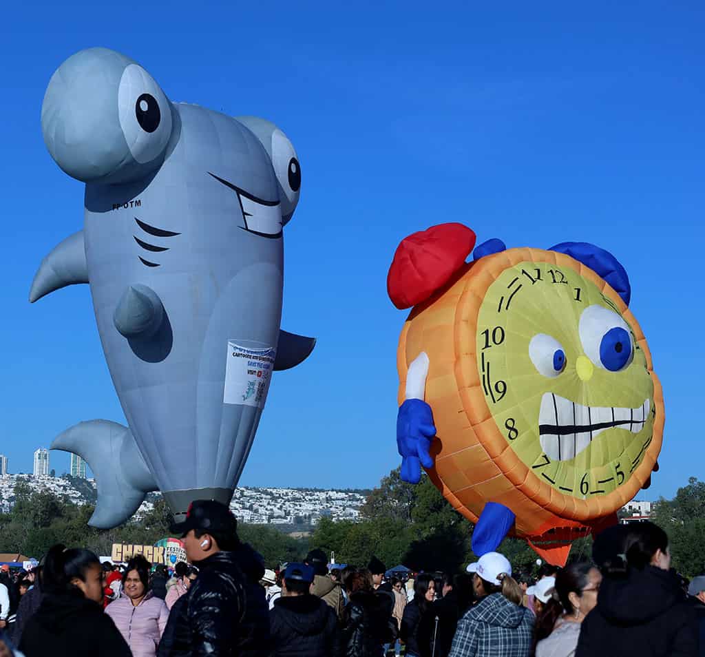 Los quemadores iluminaban la penumbra mientras las enormes figuras comenzaban a tomar forma. Minutos después, alrededor de las 6:15 a. m., el cielo leonés se convertía en un mosaico vibrante de esferas y figuras multicolores que flotaban sobre la presa, creando uno de los amaneceres más espectaculares del país. Este momento volvió a demostrar por qué el FIG es una experiencia imperdible para quienes buscan magia desde el primer rayo de sol.