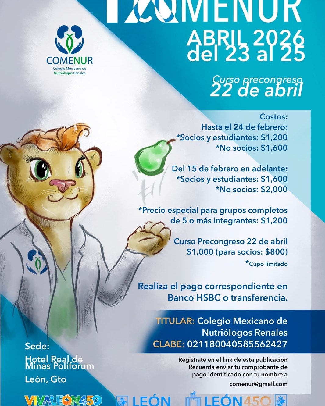 ✨ León, Guanajuato será la ciudad sede del IX Congreso Anual de Nutrición Renal COMENUR 2026 ✨