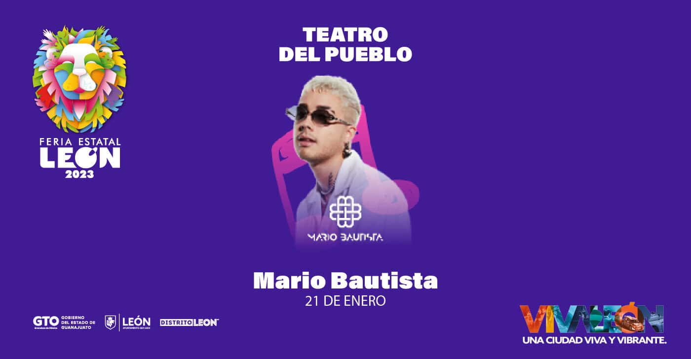 MARIO BAUTISTA + Añadir Google Calendar Exportación + iCal / Outlook Fecha 21 Ene 2023 Finalizado Sede Teatro del Pueblo Zona Recreativa y Cultural, 37500 León, Gto. Web https://www.leonguanajuato.com/teatrodelpueblo/ Categoría Conciertos Organizador Patronato de la Feria Estatal de León Teléfono 4777107017 Compartir este evento