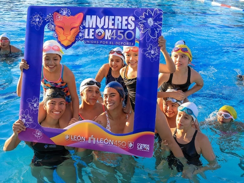 Con energía, compañerismo y un ambiente de celebración, se llevó a cabo el Festival de Natación por Relevos “Mujer León 450”, como parte de las actividades de los “12 Días, 12 Acciones, 12 Historias”, integradas al programa Mujeres León 450, Unidas por el Deporte.