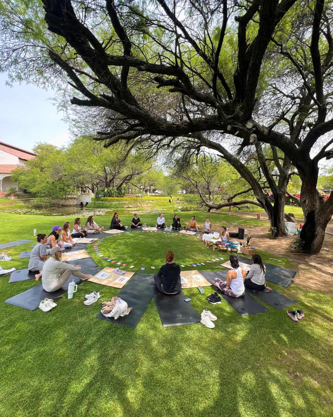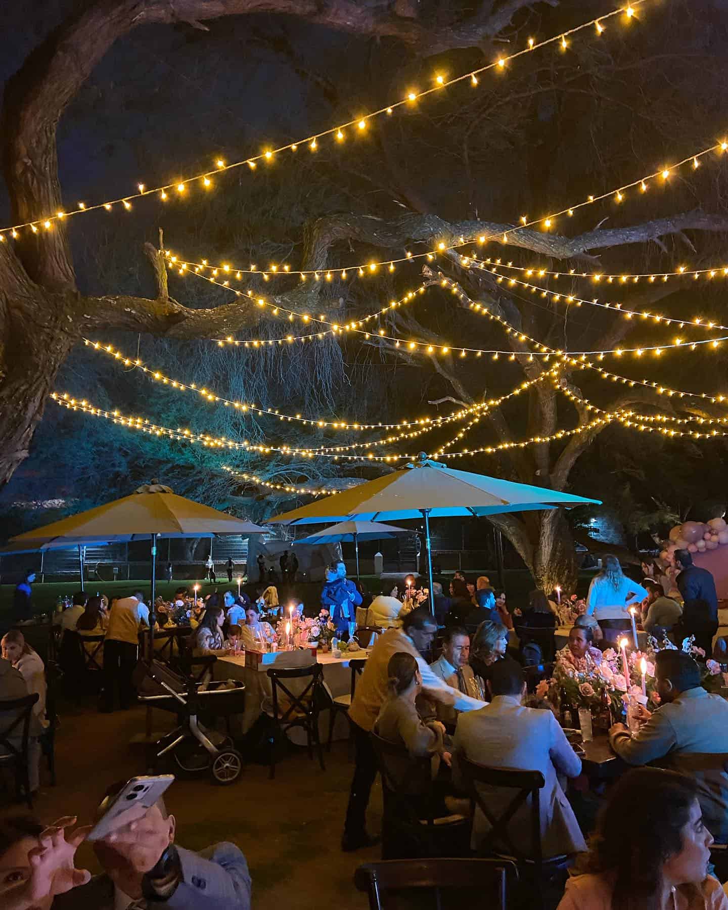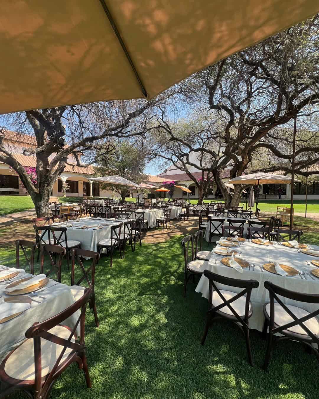 - Terraza: Un espacio al aire libre rodeado de mezquites, con vista al jardín y lago, perfecto para eventos íntimos. Capacidad: 100 invitados.