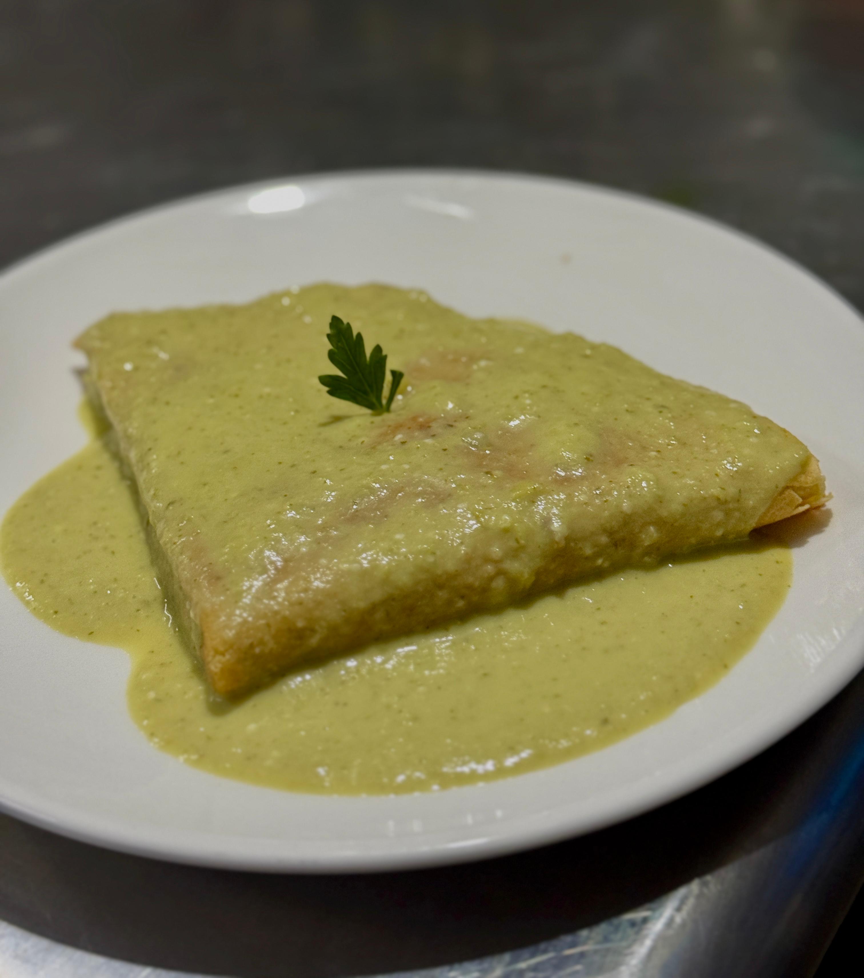 🥞 Crepa de Pollo en Salsa Suiza con Queso