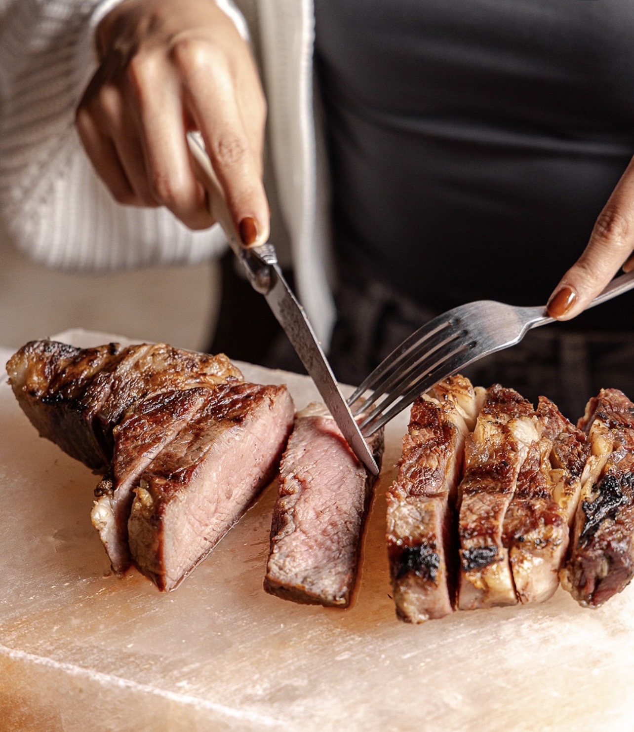 Nuestro Dry Aged nace a partir de la mejor selección de cortes que manejamos en casa. Añejamos nuestra carne de la más alta calidad en nuestra cámara de maduración. Este proceso dura entre 21 y 28 días a temperatura, humedad y estándares de higiene controlados estrictamente por nuestro Chef Ejecutivo.