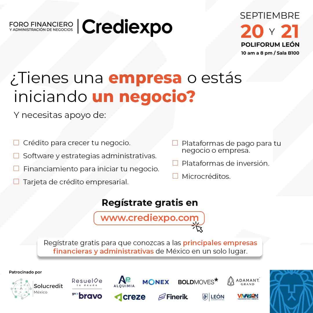 Fortalece las finanzas y la administración de tu negocio en Crediexpo, habrá conferencias de líderes, espacios de exhibición, talleres especializados y más ¡No te lo pierdas!