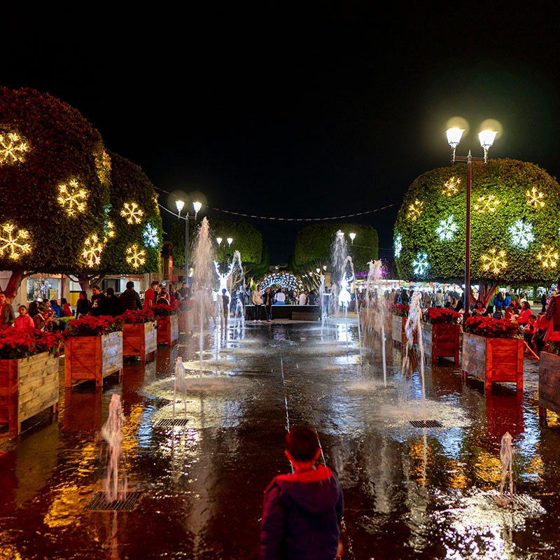 El corazón de estas celebraciones es, sin duda, la Plaza Principal, donde un imponente árbol de Navidad gigante se alza como un faro de las festividades. Este árbol es el punto de partida para muchas de las actividades navideñas y un lugar perfecto para capturar recuerdos con fotografías.