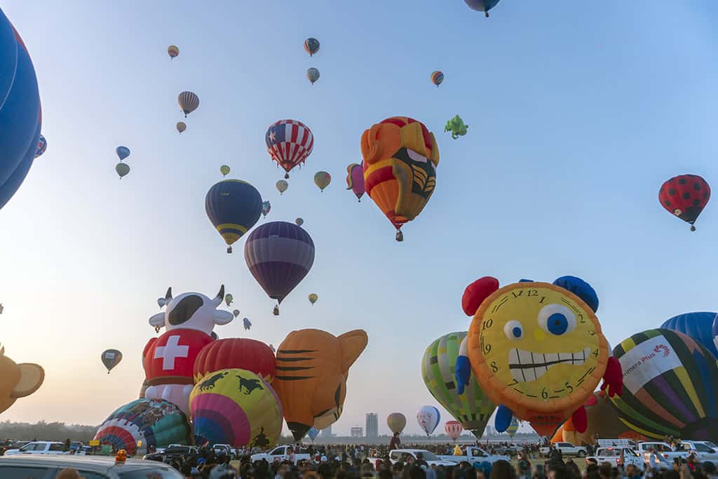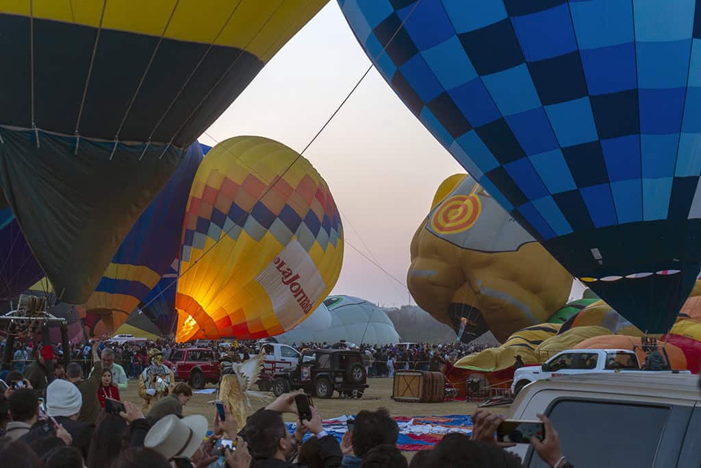- Cada mañana, desde las 06:30, se realiza el inflado de globos, seguido del despegue masivo de más de 200 globos.